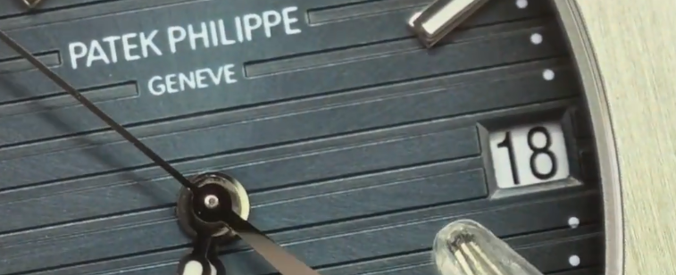 新バージョンの最大の魅力は、ダイアルの細部改善にあります。まずは文字盤のロゴ「PATEK PHILIPPE」と「GENEVE」の配置を見てみましょう。旧バージョンでは、これらが別々のグリッドに置かれていましたが、新バージョンでは台形ロゴとしてグリッド間の溝に中央寄せます。クローズアップ画像で確認できるように、フォントもやや大きくなり、よりシャープで高級感が増しています。これは、ノーチラス5711 スーパークローンの視認性を高める重要なポイントです。