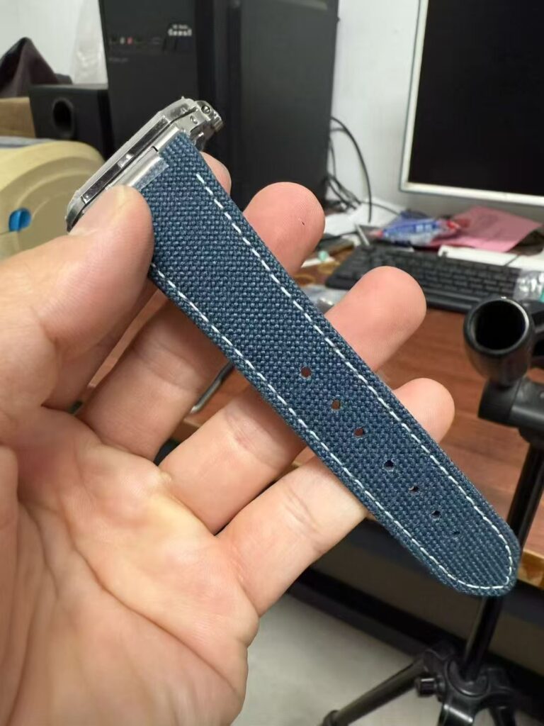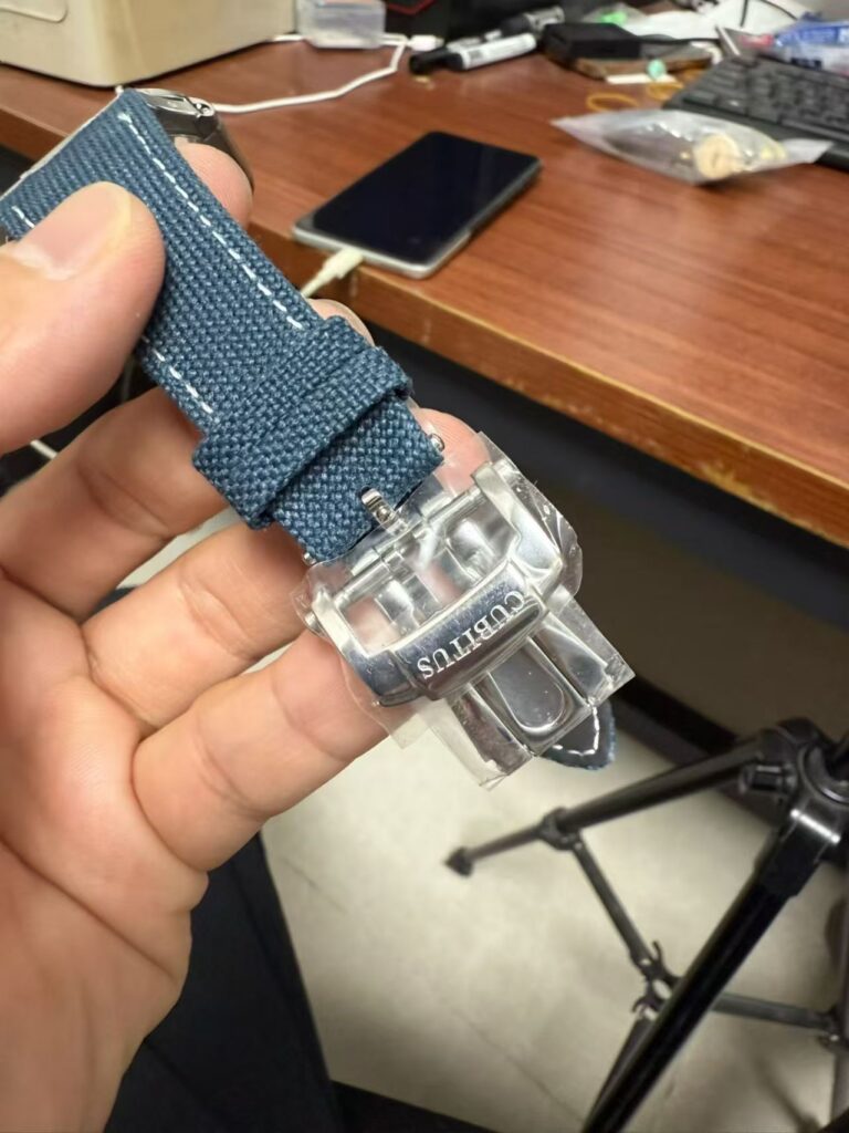 ストラップは青いファブリック調で、クラスプの「CUBITUS」刻印が本物らしさを演出しています。表側のダイヤルは日付、曜日、ムーンフェイズを備え、ビジネスシーンにぴったりです。OMEのパテックフィリップ ノーチラス N級品技術がキュビタスにも活かされ、全体のバランスが完璧です。