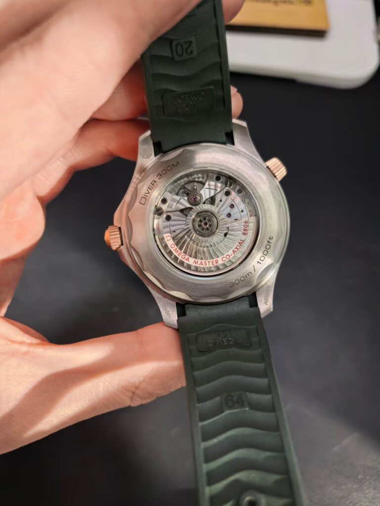 VS工場が開発した「DD8806」は、シーマスター ブロンズゴールドや、V4仕様のシーマスター ノー・タイム・トゥ・ダイにも搭載されている非常に優れたムーブメントです。対する今回のOR工場製には「SH8806」が搭載されています。
